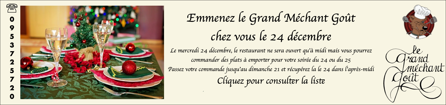 Profitez de la créativité du Grand Méchant Goût et passez vite commande de votre demi-magret de canardmouth aux racines sauvages. Appelez-nous au 09 53 725 720 ou passez au restaurant.